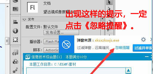如果做題時候,題目要求上方出現(xiàn)下圖這樣,一定要點【忽略提醒】,如你點過濾并舉報,則會無法做題,做題時題目要求會消失,再打開題目提示已打開。